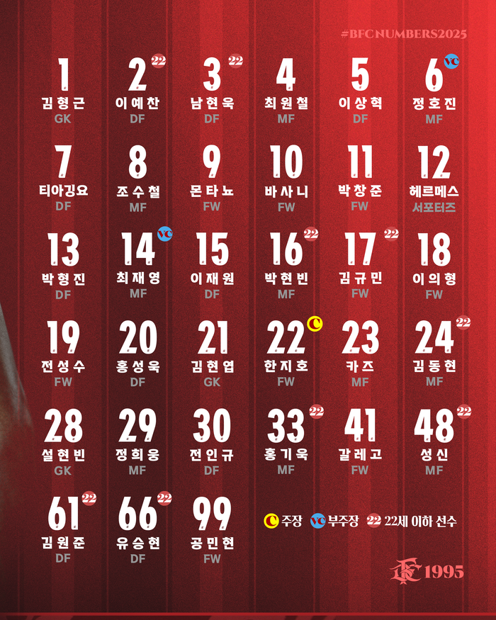 부천 구단은 2025시즌 선수단 등번호를 확정, 2일 발표했다.