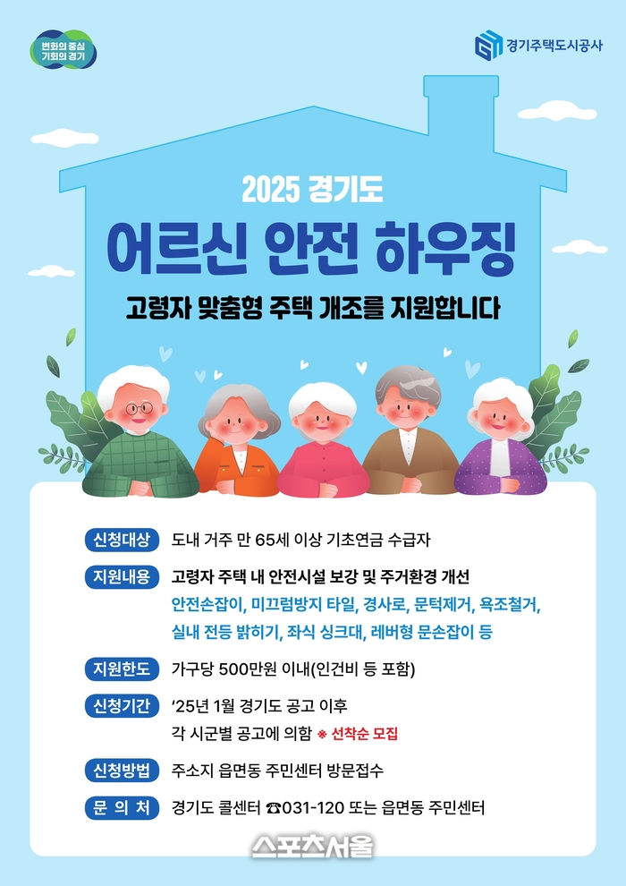 〔스포츠서울│수원=좌승훈기자〕경기도는 주거약자 및 주거취약계층의 주거 안정과 생활 편의 향상을 위해 올해 총 899가구 대상으로 주택개조 사업 네 가지를 추진한다고 2일 밝혔다.