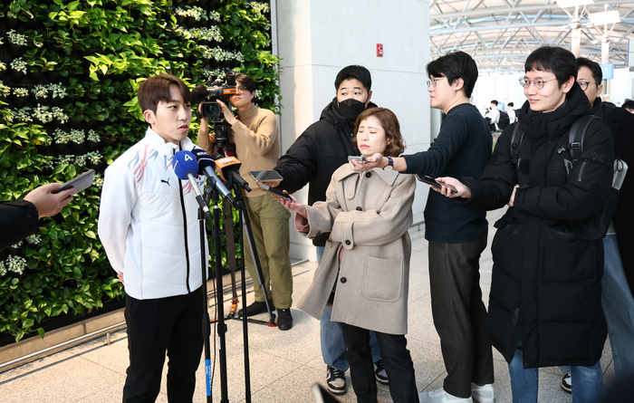 윤재명 감독이 지휘하는 쇼트트랙 대표팀은 이날 인천국제공항에서 선전을 다짐하며 비행기에 올랐다.