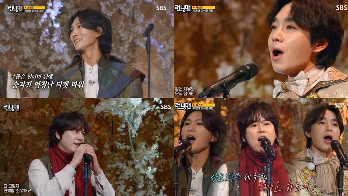 ‘웃는 남자’에서 그윈플렌으로 열연 중인 박은태, 이석훈, 규현은 지난 2일 SBS 예능 프로그램 ‘런닝맨’에 출연해 ‘낙원에서 웃는 자’ 레이스를 펼쳤다.