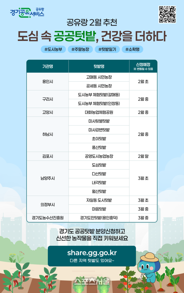 -경기공유서비스에서 8개 기관 17개 공공텃밭 분양신청 접수