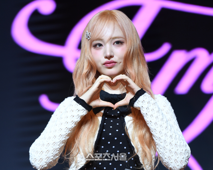 아이브 리즈가 3일 서울 여의도 콘래드호텔에서 열린 미니3집 ‘아이브 엠파시(IVE EMPATHY)’ 발매 기념 기자간담회에서 포즈를 취하고 있다.