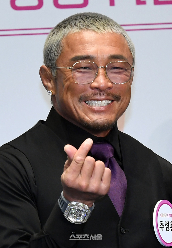 추성훈이 4일 서울 구로구 라마다서울신도림호텔에서 진행된 tvN 스토리 ‘잘생긴 트롯’ 제작발표회에서 취재진을 향해 포즈를 취하고 있다.