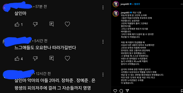 이어 “고인의 억울함이 풀리기 전에 저의 작은 억울함을 풀려고 하는 것은 잘못된 순서라고 생각합니다”라며 “다만 모든 것이 풀릴 때까지 가족에 대한 악플은 자제해 주시길 머리 숙여 부탁드립니다”라고 덧붙였다.