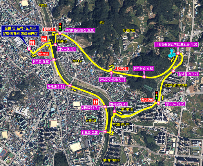 2월 대회코스는 문화의 거리 상설공연장을 출발해 원주천 둔치와 치악산바람길숲을 거쳐 원점으로 돌아오는 6.7㎞의 코스로 운영된다.