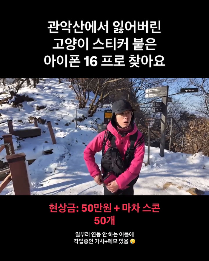 [스포츠서울 | 윤수경기자] 에픽하이 타블로가 관악산 등반 중 휴대폰을 분실해 현상금을 내걸었다.