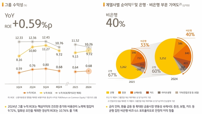 계열사별 순이익 기여도를 보면 비은행이 40%로 확대됐다. 전년 33%에서 7%포인트 상승한 비중이다. 이 기간 은행은 67%에서 60%로 낮아졌다.