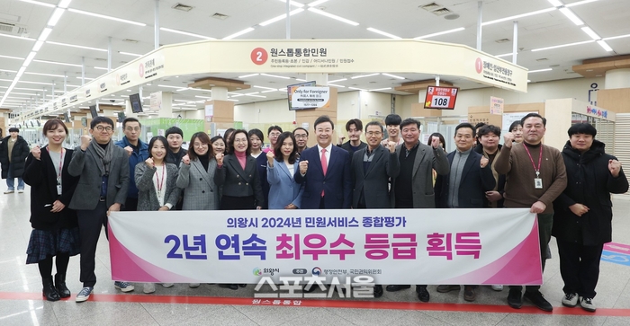 〔스포츠서울│의왕=좌승훈기자〕경기 의왕시는 행정안전부와 국민권익위원회가 주관한 ‘2024년 민원서비스 종합평가’에서 역대 최고점으로 ‘가’ 등급을 획득하며 2년 연속 최우수기관에 선정됐다고 6일 밝혔다.