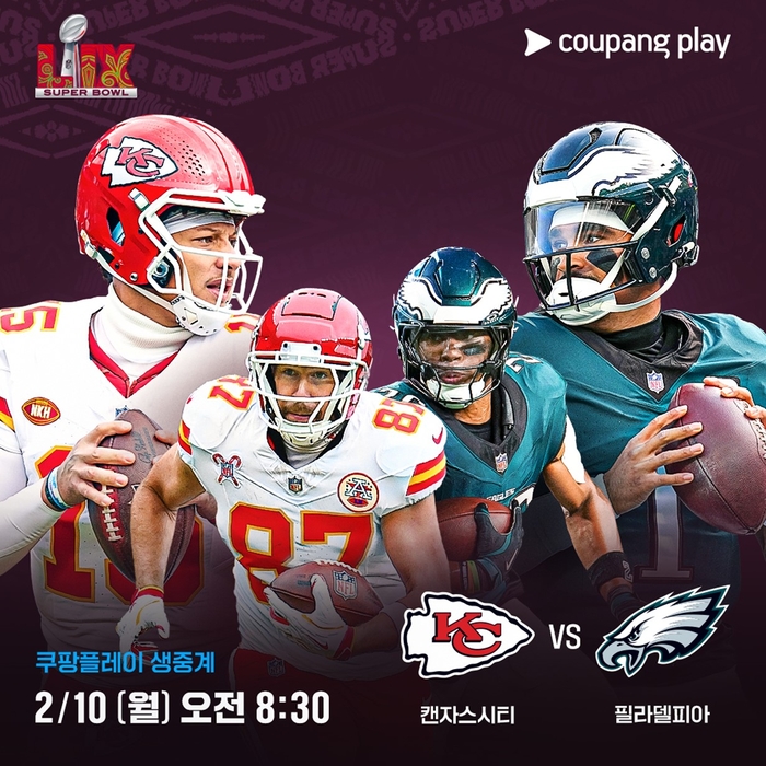 [스포츠서울 | 표권향 기자] 쿠팡플레이가 10일 오전 8시 30분(한국 시간) 미국 뉴올리언스 시저스 슈퍼돔에서 열리는 세계 최대 규모의 스포츠 축제 ‘제59회 슈퍼볼(이하 슈퍼볼)’을 생중계한다.