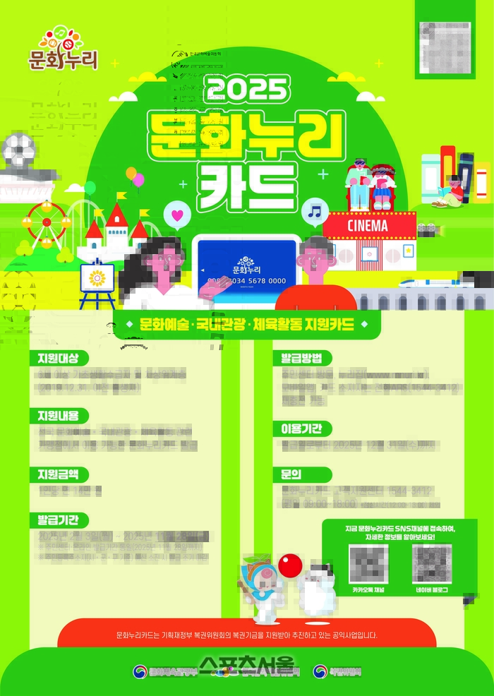 문화누리카드는 6세 이상 기초생활수급자, 차상위계층에게 문화예술·국내여행·체육 활동을 지원하는 사업으로, 올해 680억 원을 투입해 49만 939명의 대상자에게 개인별 연간 14만 원을 지원한다.