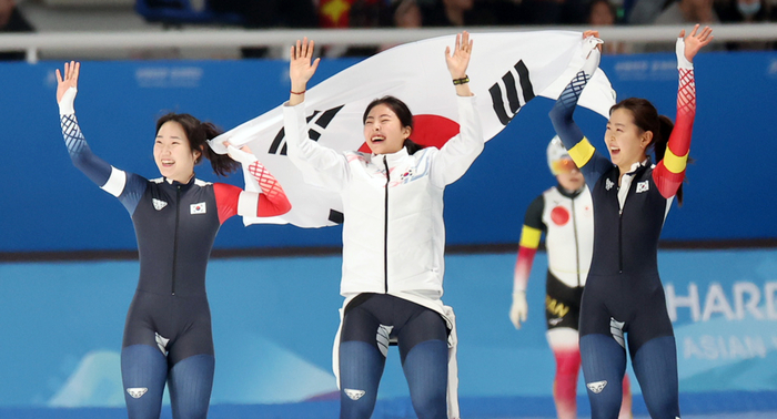 이들은 팀 스프린트에서도 김민지(화성시청)과 호흡을 맞춰 1분28초62로 금메달을 따냈다. 김민선과 이나현은 나란히 2관왕에 올랐다.