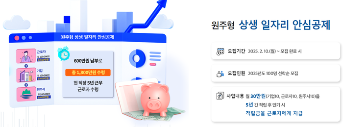 2월 10일(월)부터 원주형 상생 일자리 안심공제 홈페이지(gwwell.kr/wonju)에서 선착순 100명을 모집한다.