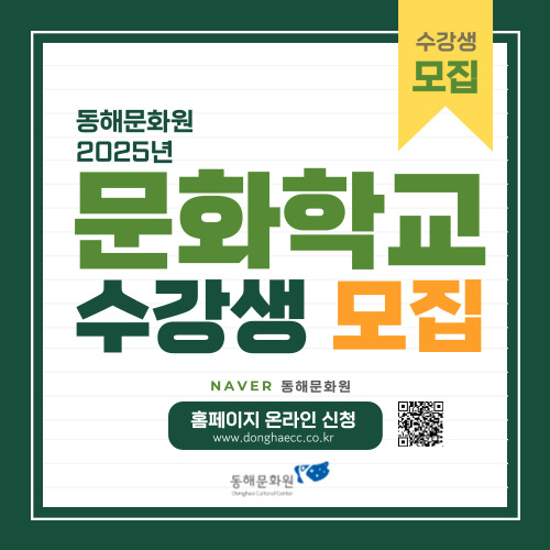 [스포츠서울ㅣ김기원기자]동해문화원(원장 오종식)이 2025년 문화학교와 사랑방 프로그램 수강생을 오는 2월 25일(화)부터 28일(금)까지 4일간 선착순 모집한다고 10일 밝혔다. 이번 모집은 동해시민을 대상으로 진행되며, 총 500여 명의 수강생을 선발할 예정이다.