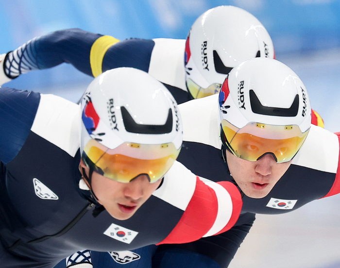 한국은 2조에서 중국과 겨뤘다. ‘간판’ 김준호가 맨 앞에서 끌고간 뒤 빠졌다. 차민규, 조상혁 순으로 레이스를 펼쳤다. 한국은 첫 번째 바퀴에서 15초85를 기록, 중국(16초58)에 앞서는 등 초반 경기를 주도했다. 그러나 마지막 바퀴에서 힘이 떨어지면서 아쉽게 중국에 금메달을 내줬다. 그래도 값진 은메달을 품은 남자 스피드스케이팅 대표팀은 서로 격려하며 웃었다.