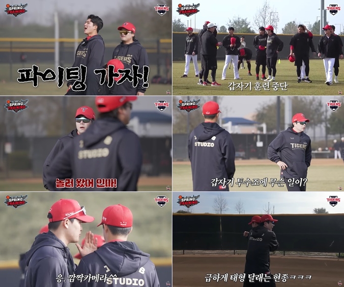 그러던 중 갑자기 투수조 훈련 분위기가 무거워졌다. 최고참 양현종이 투수들을 집합한 것. 양현종은 김태형에게 “놀러 왔어?”, “선배들 열심히 운동하고 있는데, 넌 이거(마이크) 차고 뭐 하는 거야”라며 공포감을 조성했다.