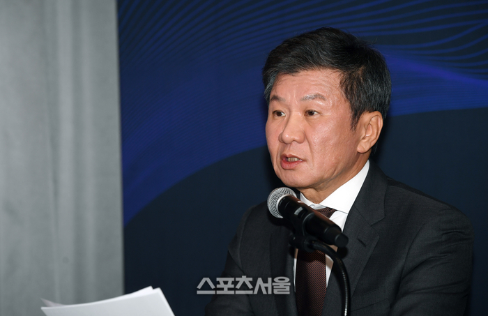 [스포츠서울 | 김용일 기자] 제55대 대한축구협회(KFA) 회장 선거전에서 ‘조용한 현장 행보’를 거듭한 기호 1번 정몽규 현 회장이 모처럼 공식적으로 미디어 앞에 서 입을 열었다. 그는 경쟁 후보인 기호 2번 신문선 명지대 교수, 3번 허정무 전 대전하나시티즌 이사장을 향해 “비방과 선거 지연 행위를 중단하고 경선에 집중해달라”고 목소리를 냈다.