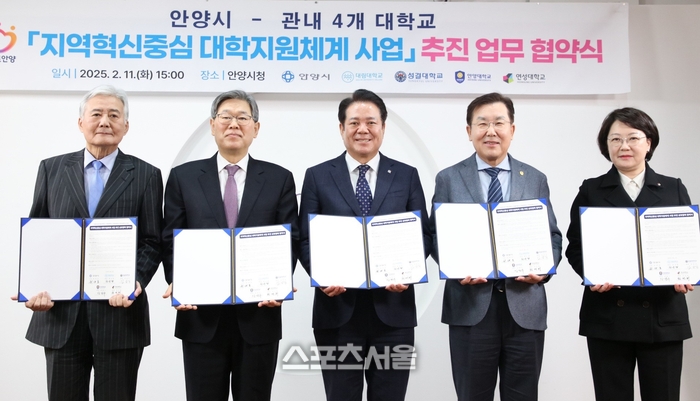 〔스포츠서울│수원=좌승훈기자〕경기 안양시는 대림대·성결대·안양대·연성대 등 4개 대학은 11일 ‘지역혁신중심 대학지원체계(RISE)’ 사업 추진을 위한 업무협약을 맺었다.