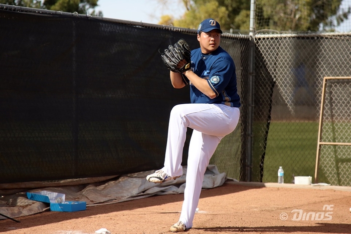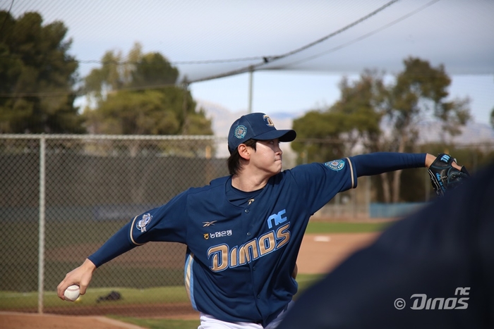 지난해 스프링캠프 첫 날, 부상을 당했다. 시작도 못한 채 낙오했다. 올해는 다르다. 부상 없이 시즌을 준비하고 있다. NC 194㎝ 장신 투수 전사민(26) 얘기다. 전사민은 “부상 없이 캠프 완주가 목표”라고 각오를 밝혔다.