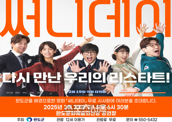 ‘써니 데이’는 2월 19일 개봉하며, 2월 28일 오후 6시 30분에는 완도문화예술의전당에서 주연 배우들이 참석하는 무료 시사회가 진행될 예정이다.