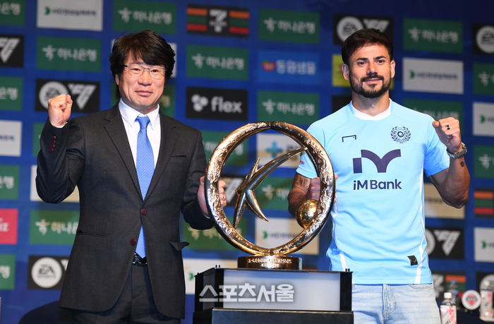13일 서울 홍은동에 있는 스위스 그랜드호텔에서 열린 ‘하나은행 K리그1 2025 개막 미디어데이’에서 세징야과 린가드는 서로를 향한 ‘호감’을 숨기지 않았다.