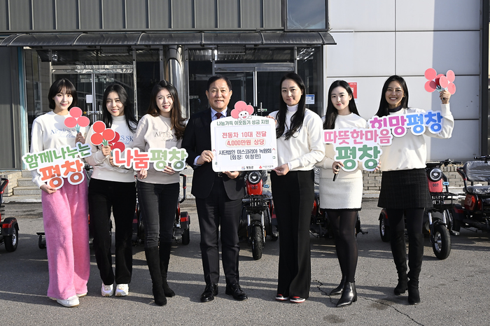 심재국 평창군수는 “미스코리아 녹원회의 따뜻한 나눔에 깊이 감사드린다”며 “기탁해 주신 전동차는 지역 주민들이 편리하고 안전하게 이용할 수 있도록 잘 전달하겠다”라고 말했다.