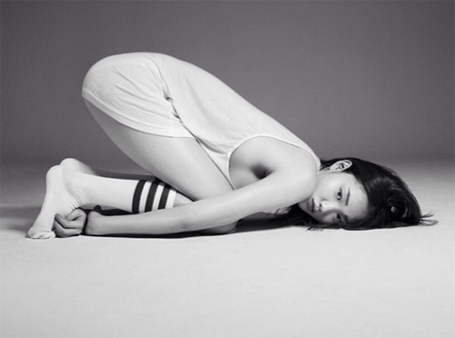 사진 속 이성경은 도도한 표정으로 카메라를 바라보고 있으며, 얼굴과 무릎을 바닥에 붙인 채 엉덩이만 들어 올린 야릇한 포즈가 눈길을 끈다.