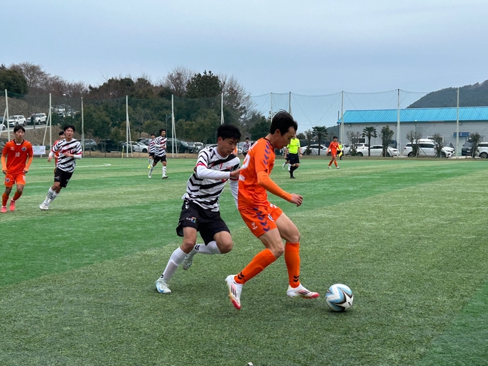 한남대는 15일 경남 통영 산양스포츠파크 6구장에서 열린 ‘약속의 땅 통영 제60회 춘계대학축구연맹전’ 통영기 조별리그 첫 경기에서 목포과학대를 5-1로 격파했다.