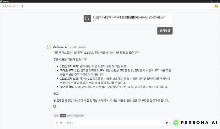 또한 페르소나AI의 AI 기술은 금융, 공공, 군사 등 보안이 중요한 분야에서 강점을 발휘한다. 딥시크가 개인정보 유출 문제로 논란을 빚고 있는 것과 달리, 페르소나AI는 인터넷 연결 없이 온프레미스(On-Premise) 환경에서 AI를 운영할 수 있어 데이터 보호 수준이 높다. 이러한 기술력 덕분에 이미 다수의 기업 및 공공기관이 페르소나AI의 솔루션을 도입했다.
