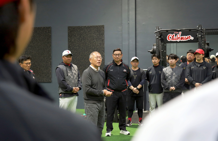 정 회장은 16일(현지시간) 미국 캘리포니아주 어바인 인근에 있는 더 클럽하우스 베이스볼을 방문했다. 더 클럽하우스 베이스볼은 KIA 선수단이 타이틀 방어를 위해 스프링캠프를 차린 곳.