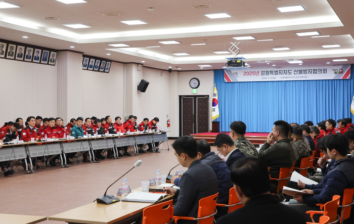 [스포츠서울ㅣ춘천=김기원기자]김진태 강원특별자치도 산불방지대책본부장(도지사)이 2025년도 봄철 산불 대응 체계 강화를 위해 2월 17일 오후 3시 도청 신관 대회의실에서「2025년 강원특별자치도 산불방지협의회」를 주재했다.