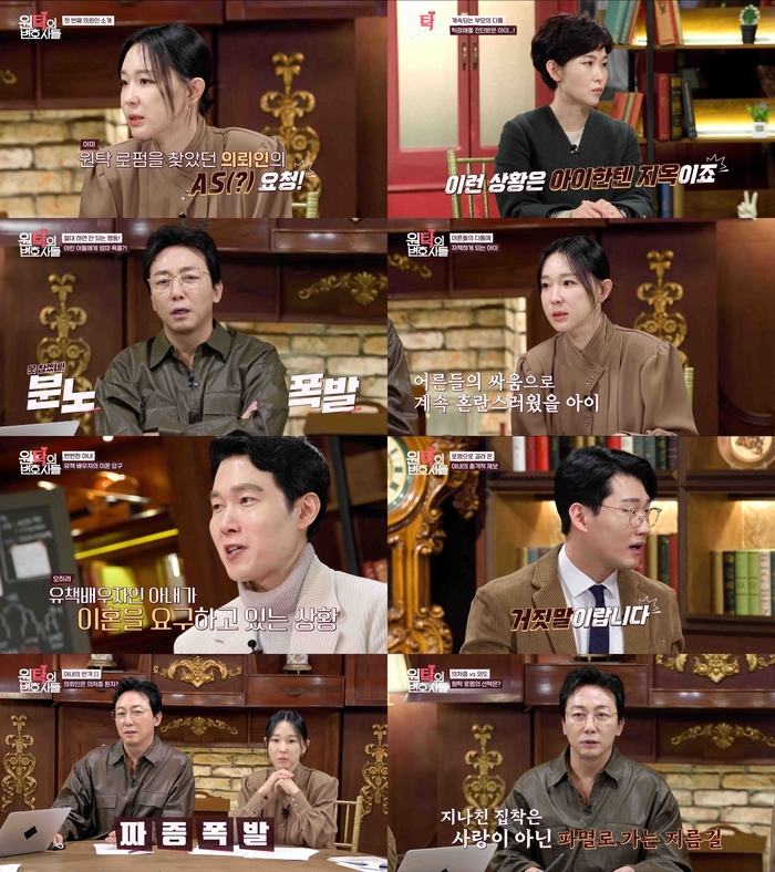 지난 17일 방송된 ‘원탁의 변호사들’ 6회에서는 이혼 부부의 양육권을 둘러싼 치열한 갈등 사연과 아내의 외도 의혹, 남편의 의처증이 얽힌 부부의 법적 다툼 사연이 공개되며 출연진들의 분노와 경악을 불러일으켰다.