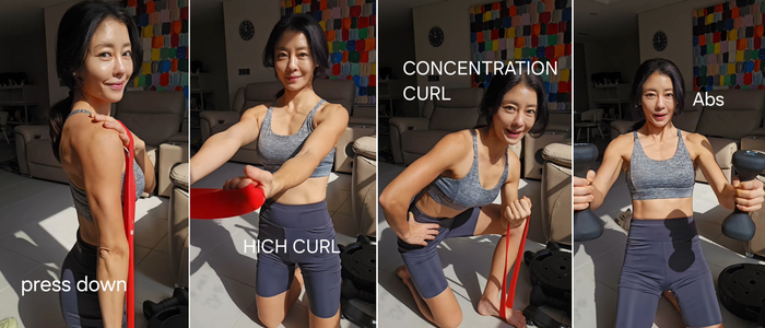 공개된 영상 속 이지현은 운동복 차림으로 밴드와 덤벨을 이용해 운동하는 모습을 선보였다. 군살 하나 없이 탄탄한 복근이 눈길을 끈다. 또한, 구릿빛 피부와 선명한 팔근육이 보는 이들의 감탄을 자아낸다.