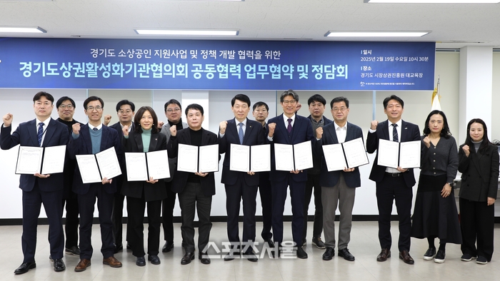 〔스포츠서울│수원=좌승훈기자〕경기도시장상권진흥원은 19일 본원 대교육장에서 도내 7개 시·군 소상공인 지원기관들과 소상공인 지원과 정책 개발을 위한 업무협약을 체결했다.