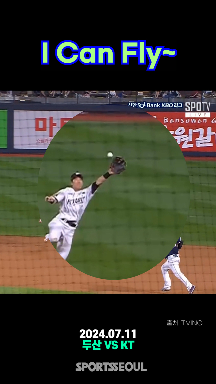 지난 시즌 두산전에서 펼친 오윤석의 환상적인 ‘슈퍼 캐치’ 모습을 담았다.park5544@sportsseoul.com