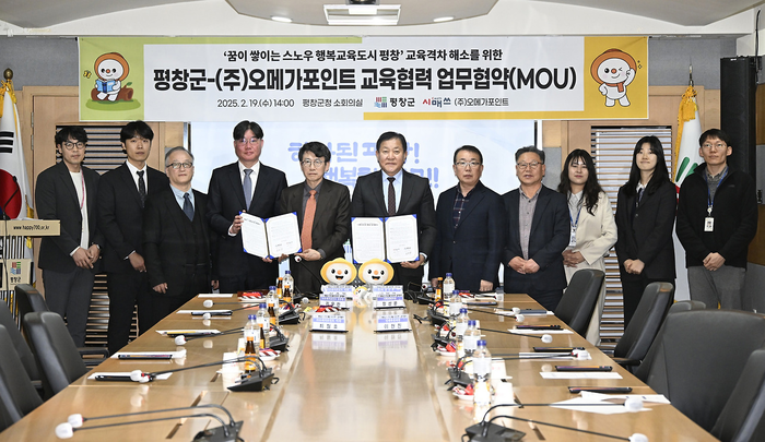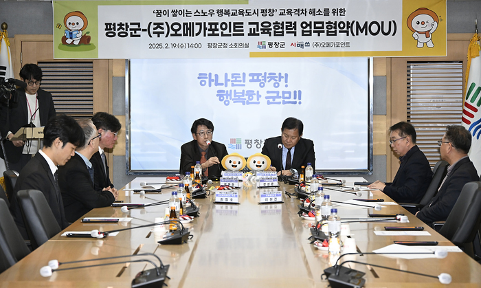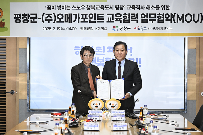 평창군은 영재사고력 수학 전문 브랜드인 시매쓰로 유명한 ㈜오메가포인트와 19일 군청 소회의실에서 농촌지역 교육 환경 개선을 위한 교육 협력 업무협약을 체결했다.