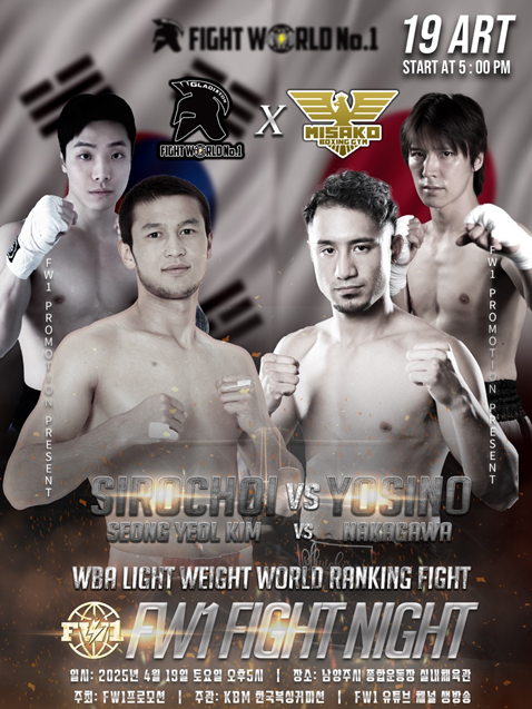 이번 대회를 주최한 FW1프로모션 최완일 대표는 “이번 경기를 위해 최시로와 FW1선수들이 혹독하게 훈련하며 준비해 오고 있으며, 이번 월드매치 성사를 위해 지속적으로 전 세계 프로모터들과 교류하며 힘든 매치업을 성사시켰다”고 밝혔다.