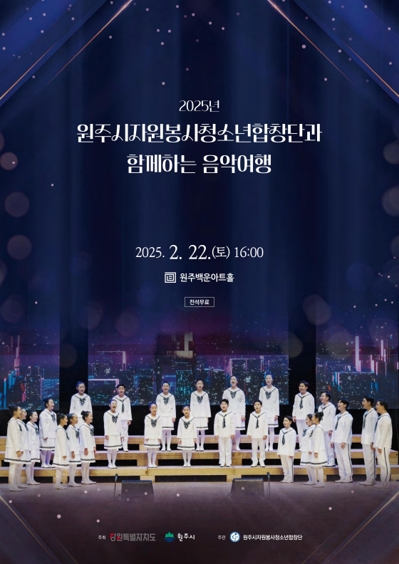 [스포츠서울ㅣ원주=김기원기자]원주시와 강원특별자치도의 지원으로 진행되는 특별한 음악 공연 ‘원주시 자원봉사 청소년 합창단과 함께하는 음악여행’이 오는 2월 22일(토) 오후 4시 백운아트홀에서 열린다.