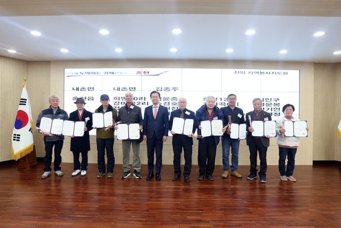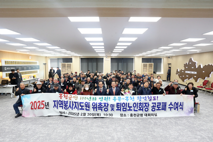 [스포츠서울ㅣ김기원기자]홍천군이 2월 20일 오전 10시 30분 홍천군청 대회의실에서 신규 노인 지역 봉사지도원 위촉장 및 퇴임 노인회장 공로패 수여식을 개최했다.