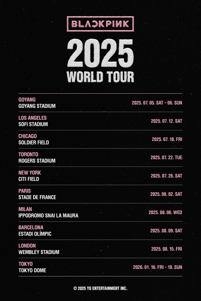 YG엔터테인먼트 관계자는 “BORN PINK 투어의 기록을 뛰어넘는 역대급 공연이 될 것”이라며 “추가 지역과 일정도 조만간 공개될 예정”이라고 전했다.