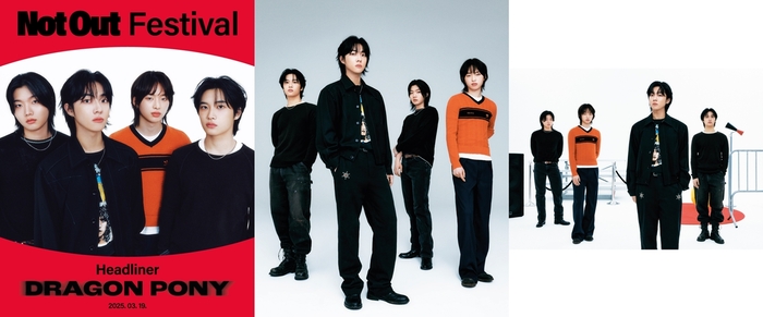 페스티벌 라인업 포스터 형식의 사진 속 네 멤버는 강렬한 눈빛과 포즈로 독보적인 존재감을 보여주고 있다. 스피커, 펜스 등의 오브제들로 콘셉트 몰입감을 더하며, 무대 위 드래곤포니가 보여줄 압도적인 밴드 퍼포먼스에 기대감을 높였다.