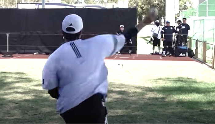 스트라이드 폭도 줄었다. 잠수함 계열은 골반을 최대한 포수쪽으로 밀고 나간 뒤 회전해야 힘을 받는다. 스트라이드가 길 수밖에 없다. 팔꿈치가 어깨보다 위에 있으니, 코어 근육을 쓰는 방식도 달라질 수밖에 없다. 보폭을 줄인 대신 정렬에 신경쓴 듯 왼 무릎이 좌타자 배터박스 쪽으로 열리는 듯한 자세가 사라졌다. 포수 시선으로 바라보면 척추각이 좌우로 변하지 않고 제자리에서 회전하는 느낌이다.