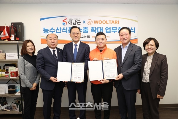 [스포츠서울|조광태기자] 명현관 해남군수가 미국 현지시간 24일, 로스앤젤레스 소재의 농식품 전문판매사인 울타리(WooltariUSA)와 농식품 수출 확대를 위한 업무협약을 체결했다.