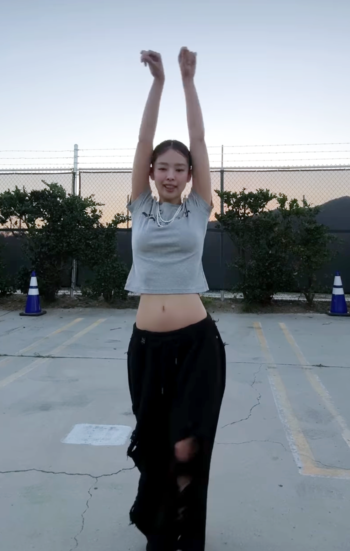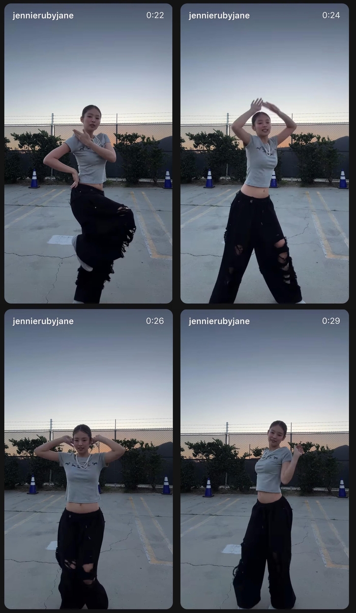 제니는 25일 자신의 SNS에 주차장에서 힙하면서도 편안한 패션으로 춤을 추는 영상을 올렸다.