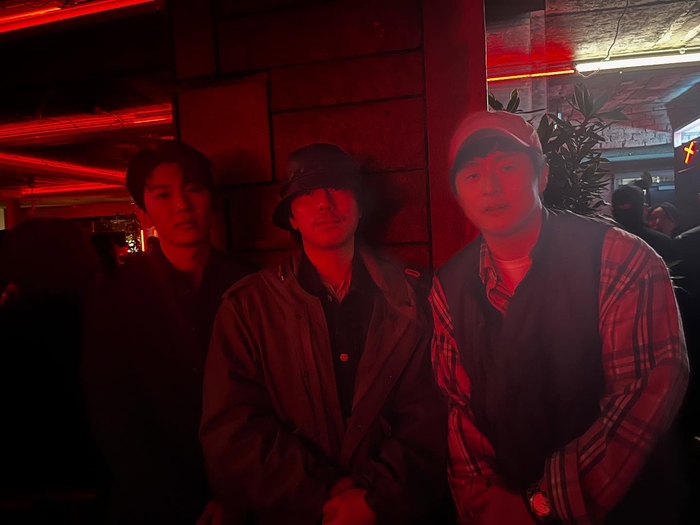 이시언은 26일 자신의 SNS에 “김화백이랑 덱스셉드랑 지디님 만나러 #gd3집 #이시언 김화백 합성 아닙니다”라는 글과 함께 사진 한 장을 공개했다.