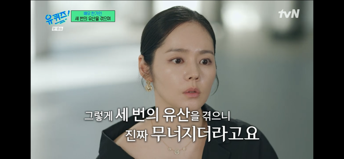 배우 한가인은 26일 방송된 tvN ‘유 퀴즈 온 더 블럭’에tj 남편 연정훈과의 결혼 스토리와 세 번의 유산과 출산, 양육 등에 대해 이야기를 풀어놓았다.