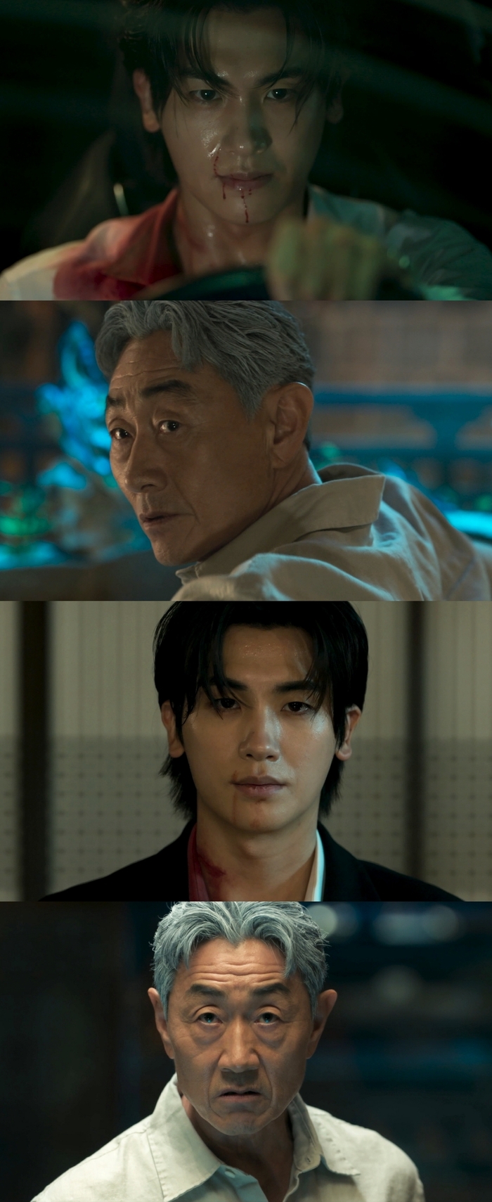 사진 속 서동주는 염장선의 습격으로 인해 피투성이가 된 모습이다. 무언가 결심한 듯 형형하게 빛나는 눈빛이 인상적이다. 다음 사진에서는 충격과 불안에 휩싸인 염장선의 모습이 담겨 있다.