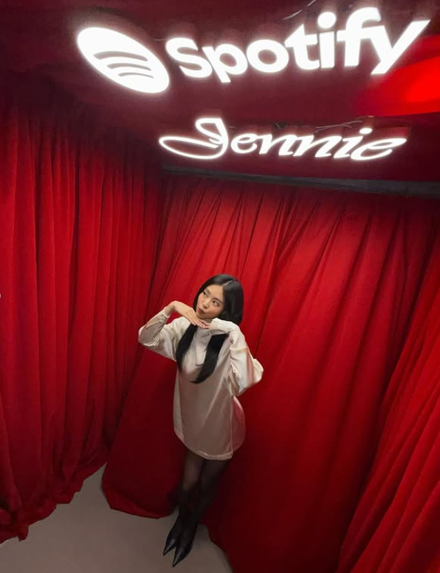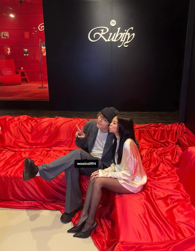 리스닝파티 행사장은 앨범명 ‘루비’에 맞춰 루비 레드 컬러로 꾸며졌으며, 제니는 아이보리색 투피스와 같은 색의 실크 미니드레스를 입고 등장해 우아한 매력을 뽐냈다. 또한, 행사에 참석한 지코와 나란히 앉아 포즈를 취하며 즐거운 분위기를 연출했다.