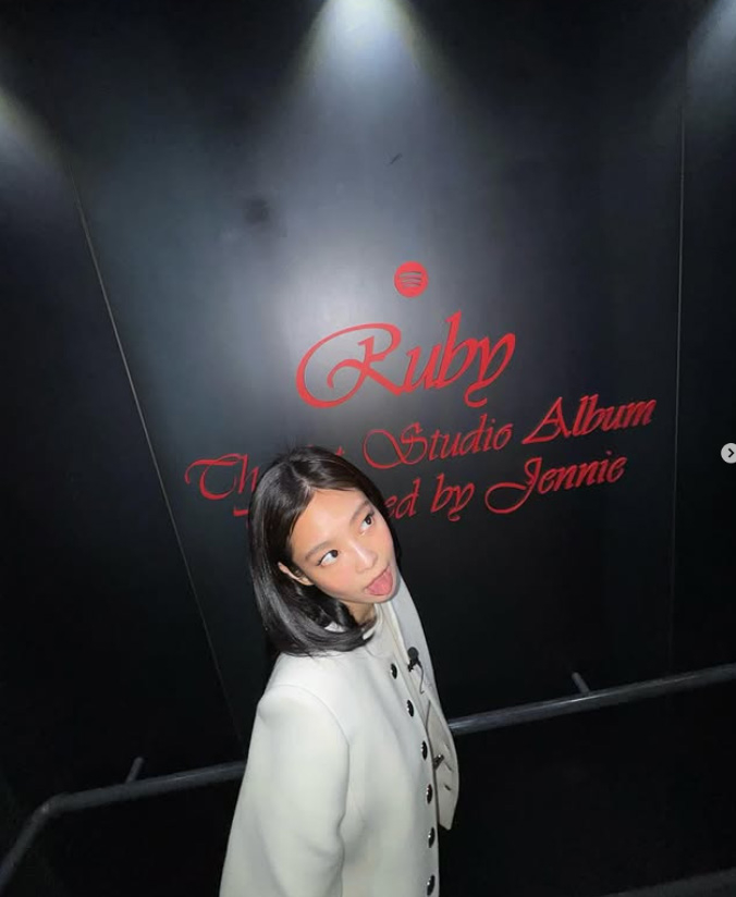 제니는 27일 자신의 SNS에 이날 진행한 ‘루비’ 리스닝파티 사진과 영상을 게재했다.