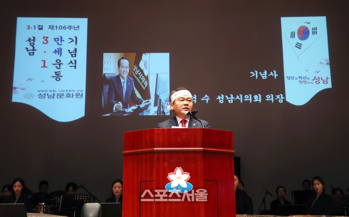 이 의장은 기념사를 통해“오늘날의 자유와 평화가 누군가의 희생이 있었기에 가능했다는 사실을 항상 기억하며, 그 뜻을 이어받아 더 나은 세상을 만들어 나가야 할 것”이라며 “성남시의회는 독립선언문에 새겨진 거룩한 뜻을 받들고, 시민의 밝을 미래를 열어가는 데 전력을 다할 것“이라고 말했다.