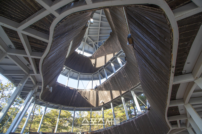 ‘Anyang Peak’는 작품이 전망대 역할을 하는 곳이다. 조금씩 삐뚤어진 나선형 통로를 모두 오르면 삼성산 기슭과 안양예술공원 전체 모습을 감상할 수 있다. ‘나무 위의 선으로 된 집’은 안양예술공원 끝자락에 자리 잡고 있다. 유선형 야외 공연장과 연결 통로 역할을 하는 튜브 형태의 육교는 ‘인증샷’ 장소로도 유명하다. 2024년 11월 폭설로 육교 통로가 파손되어 아쉬움이 남지만 2025년 보수 공사를 진행할 예정이다. 숲을 산책하고 계곡을 따라 걷다 보면 자연스럽게 예술 작품까지 감상할 수 있는 안양예술공원. 자연을 품은 거대한 미술관이나 다름없다.
